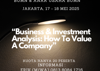 Read moreWORSKHOP PUBLIK “Business & Investment Analysis: How To Value A Company” ( TERBUKA Untuk BUMN, ANAK USAH BUMN, DAN UMUM...