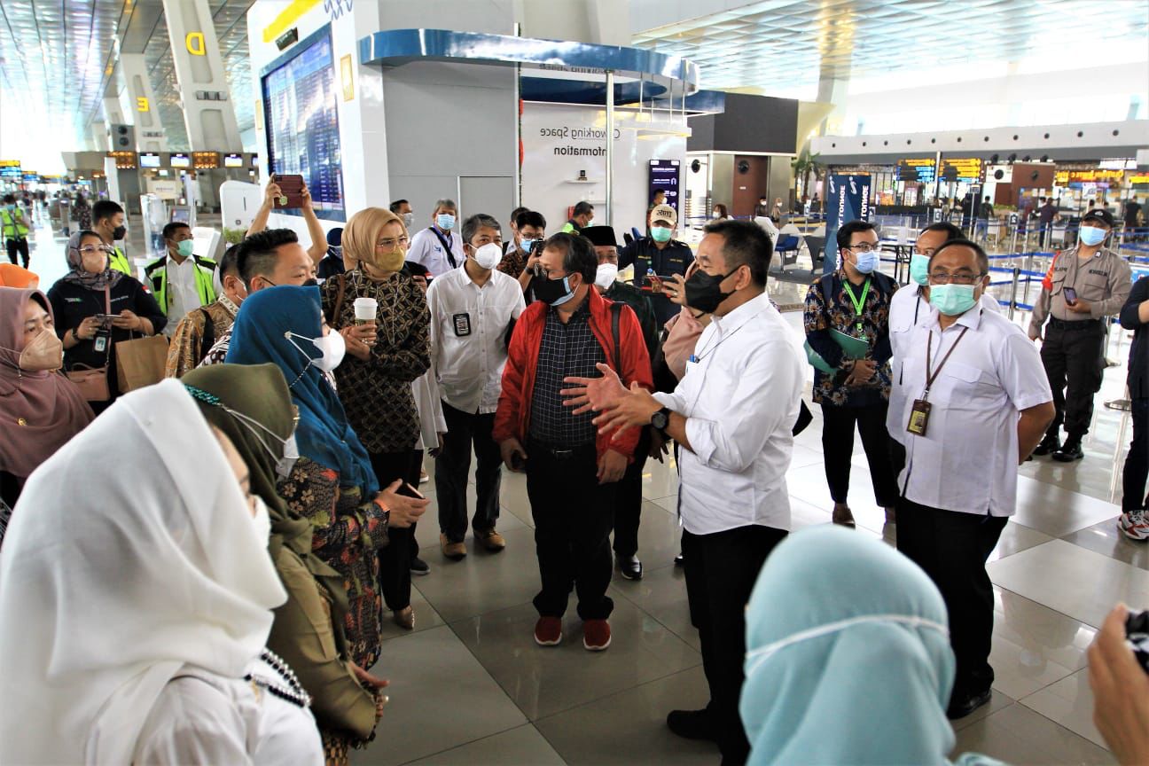Kunjungan Kerja dilakukan sekitar pukul 08.00 WIB, di mana President Director of AP II Muhammad Awaluddin menjelaskan secara langsung alur kedatangan penumpang internasional di arrival hall kedatangan internasional Terminal 3, mulai dari proses di holding bay, pemeriksaan dokumen Kesehatan oleh KKP Kemenkes, lalu tes PCR, pemeriksaan dokumen imigrasi, proses bea dan cukai, kemudian persiapan proses karantina ke Wisma Atlet Pademangan atau hotel.