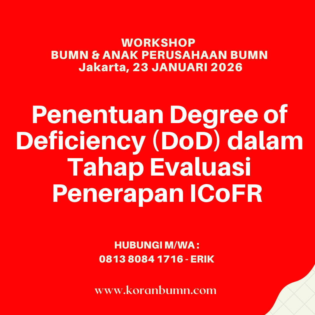 Untuk itu, KORAN BUMN akan melakukan workshop yang membahas beberapa isu penting terkait tahap evaluasi dalam penerapan ICoFR BUMN dan Anak Perusahaan BUMN dengan subtopik-subtopik sebagai berikut: