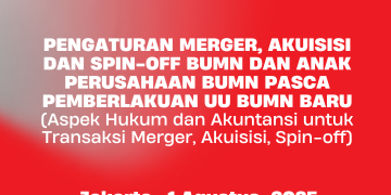 WORSKHOP BUMN DAN ANAK USAHA BUMN PENGATURAN MERGER, AKUISISI DAN SPIN-OFF BUMN DAN ANAK PERUSAHAAN BUMN PASCA PEMBERLAKUAN UU BUMN BARU (Aspek Hukum dan Akuntansi untuk Transaksi Merger, Akuisisi dan Spin-off) Jakarta , 01 Agustus 2025 Dalam dunia bisnis, untuk meningkatkan kapabilitas dan daya saing perusahaan, merger, akuisisi dan spin-off merupakan strategi yang sering … Lanjutkan membaca Workshop BUMN dan Anak Usaha 01 Agustus 2025 : PENGATURAN MERGER, AKUISISI DAN SPIN-OFF BUMN DAN ANAK PERUSAHAAN BUMN PASCA PEMBERLAKUAN UU BUMN BARU